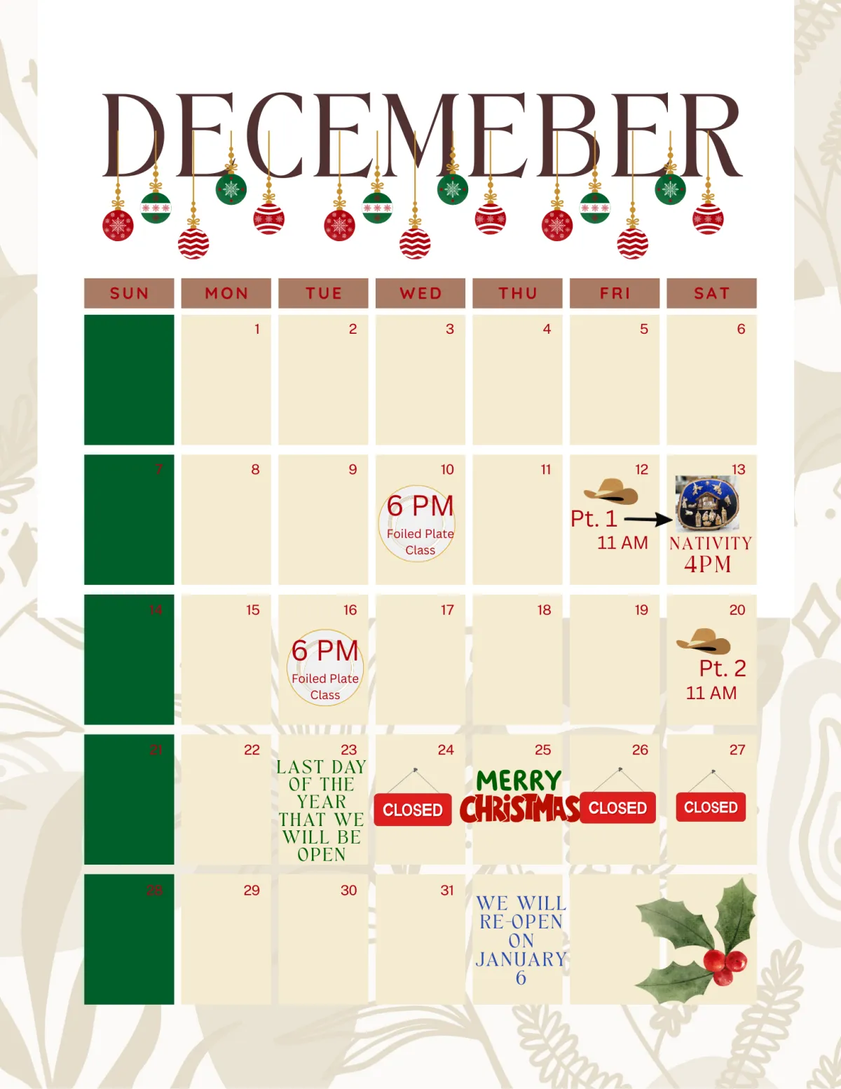 Welcome to our creative workshops where you'll learn to create beautiful custom ornaments, plates, hats, paint furniture and more!